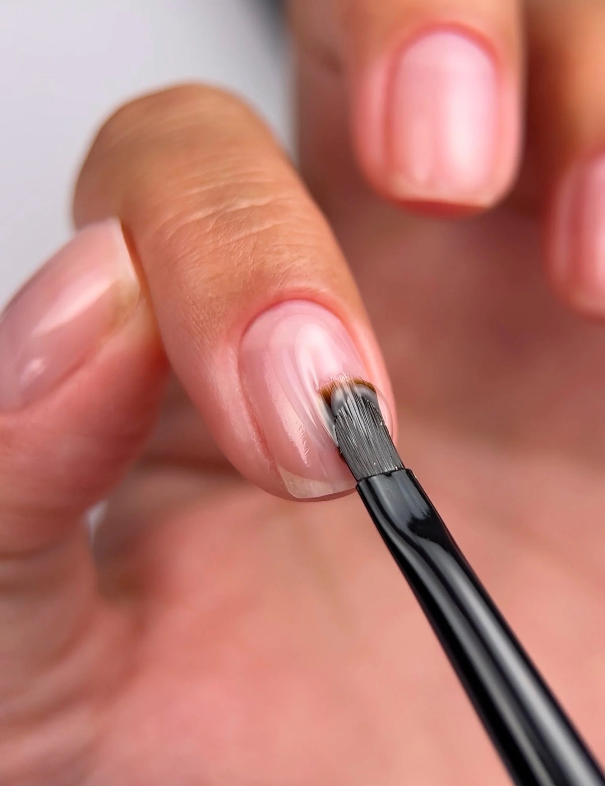 Prepare the nail plate (chemical/mechanical preparation).